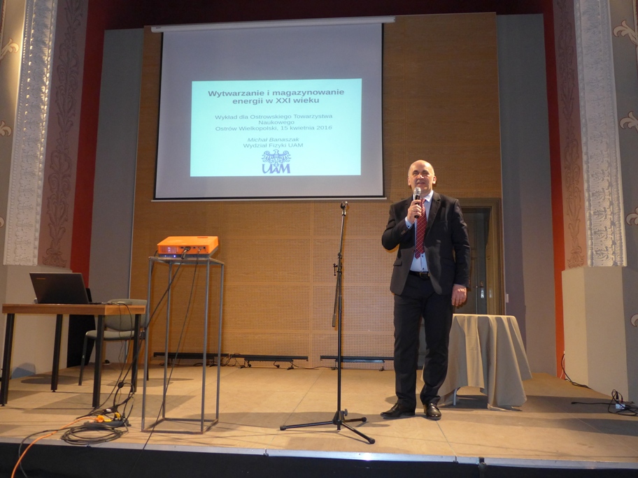 Tematem wykładu prof. Michała Banaszaka było omówienie istniejących i przyszłych źródeł energii wykorzystywanych przez człowieka. Prelegent przedstawił źródła energii stosowane od wieków (spalanie kopalin naturalnych), jak również nowe sposoby, które mogą zyskiwać na znaczeniu w przyszłości, choć znane są już dzisiaj (energia termojądrowa, energia zawarta w świetle słonecznym, ogniwa paliwowe). Ich przydatność jest pochodną możliwości kontrolowania procesu, kosztów uzyskiwania energii oraz sposbów i kosztów jej magazynowania. Najbardziej wydajna w chwili obecnej jest energetyka jądrowa - zarówno jeśli chodzi o koszt produkcji, jak również ze względów bezpieczeństwa i ekologicznych.