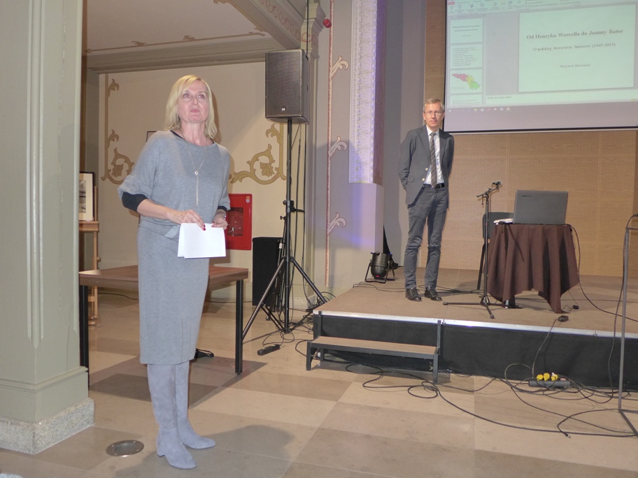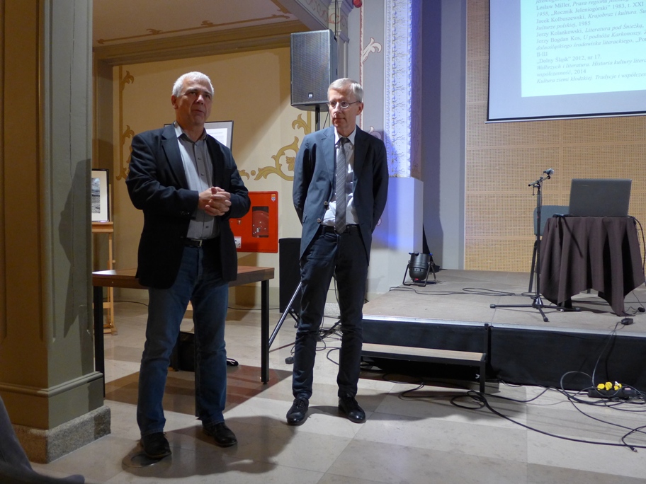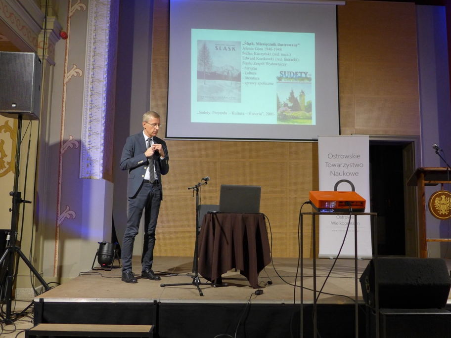 W swoim wykładzie prof. Browarny scharakteryzował piśmiennictwo polskie poświęcone Sudetom, przypomniał podstawowe kategorie literatury regionalnej, wymienił najbardziej zasłużonych autorów i działaczy kultury po roku 1945 oraz najważniejsze zmieniające się w czasie tematy: propagandowo służebne opowieści o śladach polskości na tych terenach, odkrycia i świadectwa kulturowej swoistości Sudetów, a w ostatnich latach narracje odwołujące się do dawnej i wojennej przeszłości regionu.