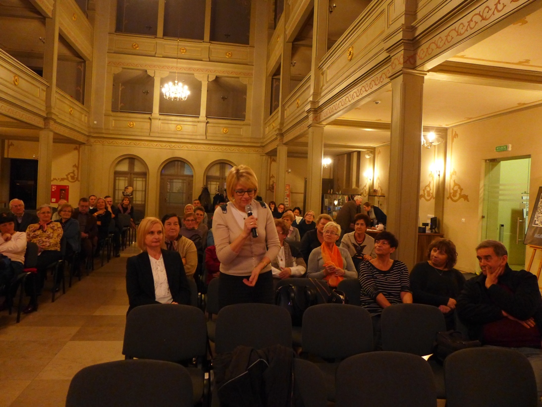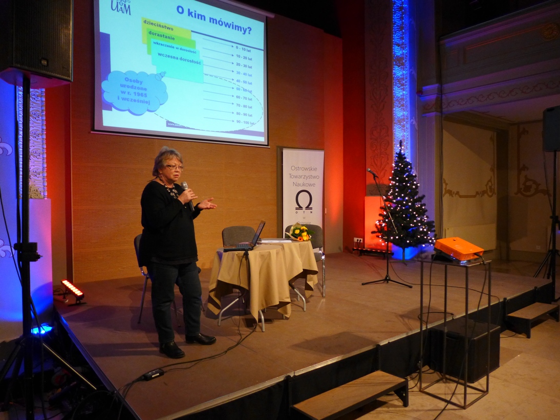 Publiczność, która zgromadziła się licznie w ostrowskiej synagodze, wysłuchała prelekcji poświęconej aktywności społecznej i zawodowej osób starszych, będących już na emeryturze. Pani profesor Brzezińska zwracała uwagę na zależność między aktywnością w młodszym wieku - angażowaniem się zawodowym, społecznym, działalności w stowarzyszeniach itp. - a aktywnym życiem w późniejszym wieku. Ważną rolę mają tu do odegrania także relacje z przedstawicielami młodszych pokoleń, bezpośredni kontakt, korzystanie z ich wiedzy i pomocy.