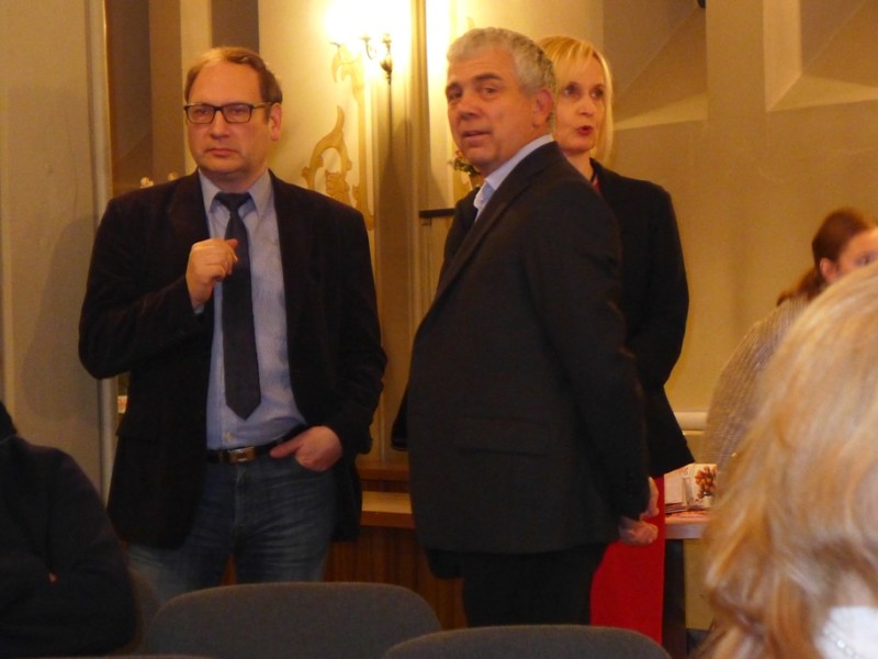 Wśród wymienianych przez prelegenta autorów piszących o Sudetach lub na tematy związane z regionem najważniejsze miejsce zajął Henryk Worcell jako autor powieści Najtrudniejszy język świata, Zbigniew Kubikowski, a ze współczesnych pisarzy natomiast mowa była o Joannie Bator, Hubercie Klimko-Dobrzanieckim, i oczywiście o Oldze Tokarczuk.